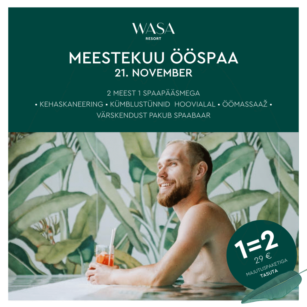 Reedel, 21. novembril, toimub Ööspaa üritustesarja raames meestepäeva eriüritus. Sel õhtul pakume meestele võimalust lasta spetsialistidel teha kehaskaneering ning ühendada see saunamõnude ja lõõgastava öömassaaži paketiga. Neile, kes tunnevad end terve ja energilisena, on avatud spaabaar, kus saab tellida meelepäraseid jooke, sealhulgas unikaalset Wasa Resorti käsitööõlut – Wasa Craft Ale.